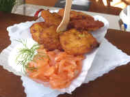 Für Süßmäuler mit Konfitüre oder Suppen und Eintöpfe Kräftig und herzhaft ("Grumbieresupp", Käse-Lauch-Suppe mit Hackfleisch, Gulaschsuppe, Bärlauchsuppe, Pichelsteiner, Kürbissuppe, Erbsensuppe, Gemüsesuppe ...) Kartoffelklöße ("Hoorische") mit Speck-Rahm-Sauce Fleischklöße ("Flääschkneppcher") mit Meerrettichsoße Feuriges Gulasch vom Bio-Rind Majoran-Kartoffeln mit Schweinefleisch, dazu Elsa`s Frisee-Salat Gerne stimmen wir unser Angebot mit dem Veranstalter ab. |